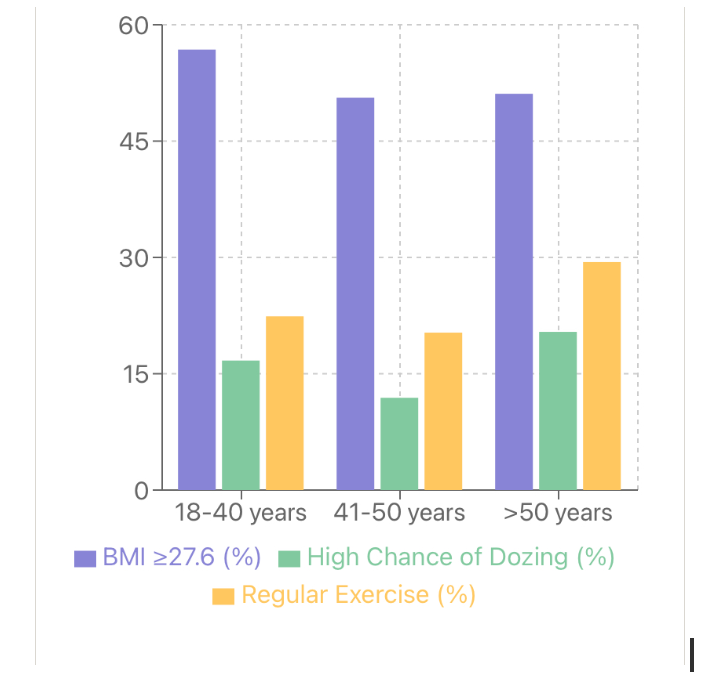 The findings revealed distinct age-specific patterns in obesity and sleep quality among newly diagnosed T2DM patients. Younger patients show higher obesity prevalence, while older patients report poorer sleep quality but more regular exercise. The consistent association between high BMI and poor sleep quality across all ages highlights the need for tailored management strategies addressing both factors in early T2DM care.