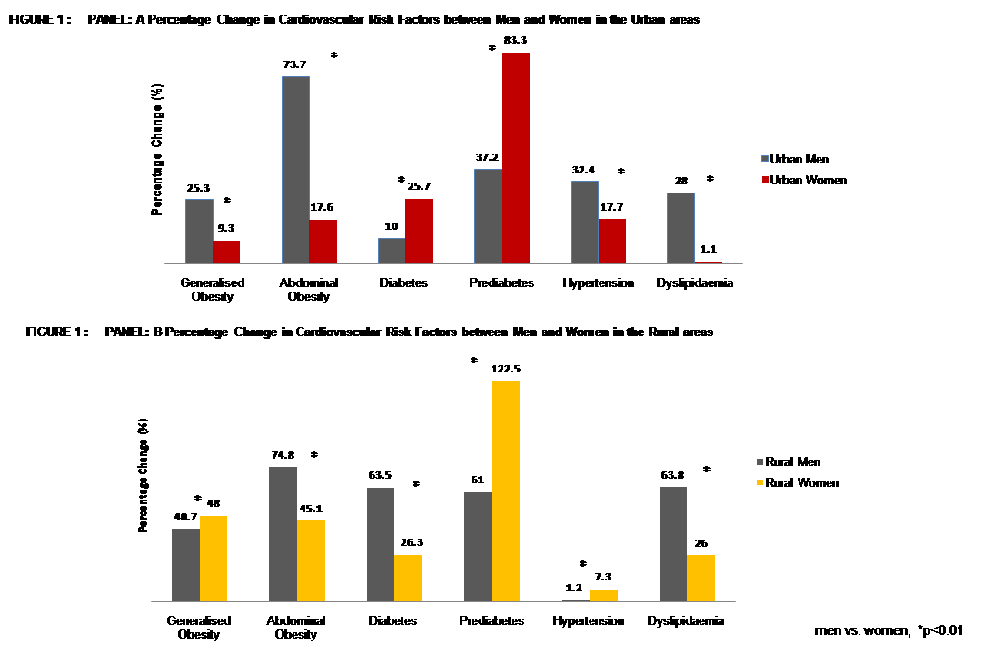 Changes In Prevalence of Cardiovascular Risk Factors Between Men and Women in Rural and Urban Southern India